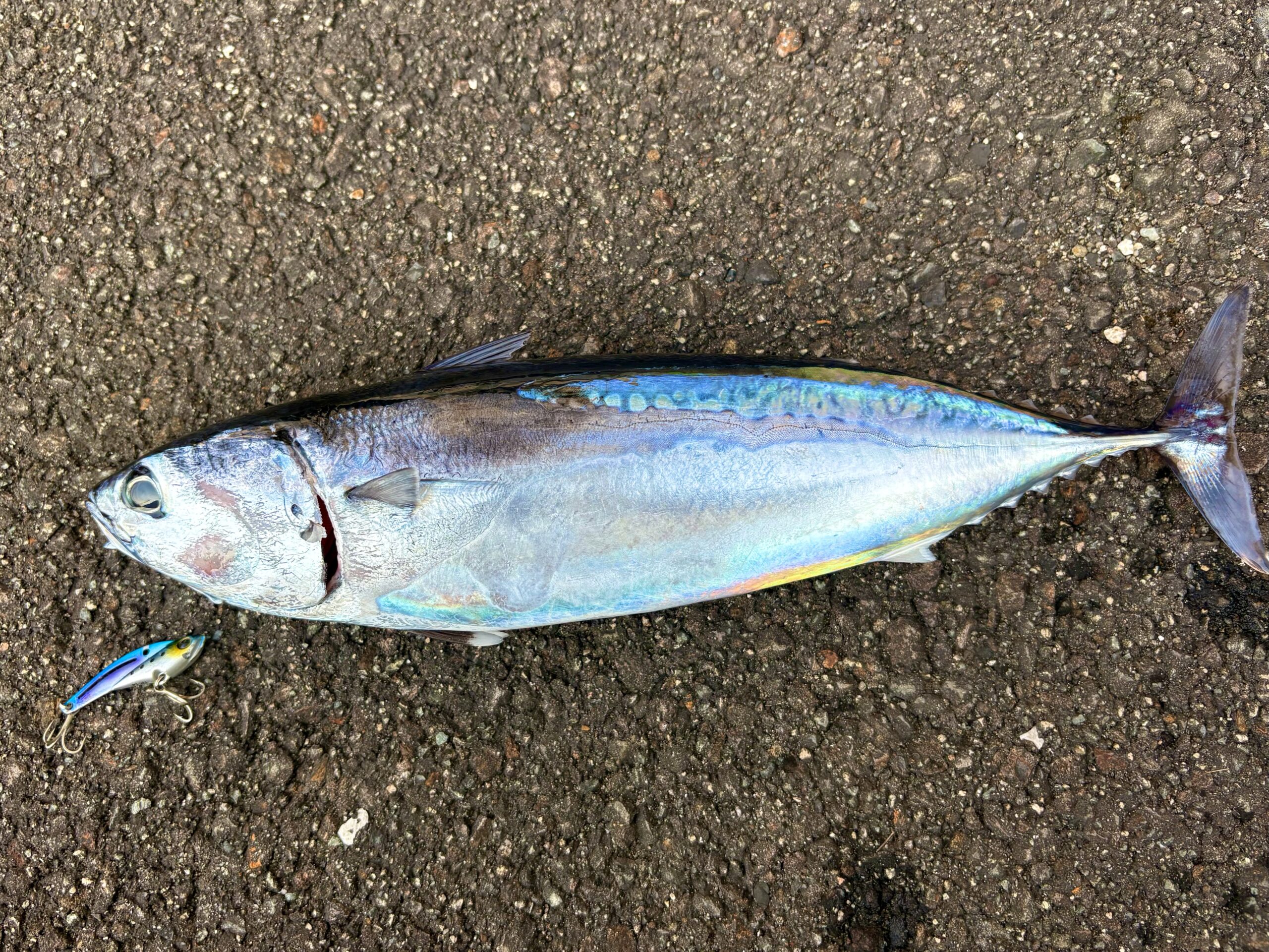 朝まずめくらいの時間帯、周りにはイワシの群れやグレの群れが混合していました。